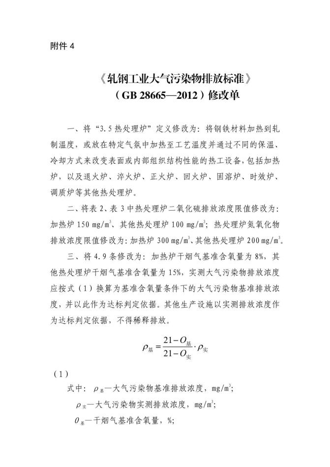 七、軋鋼工業大氣污染物排放標準(GB 28665-2012)修改單