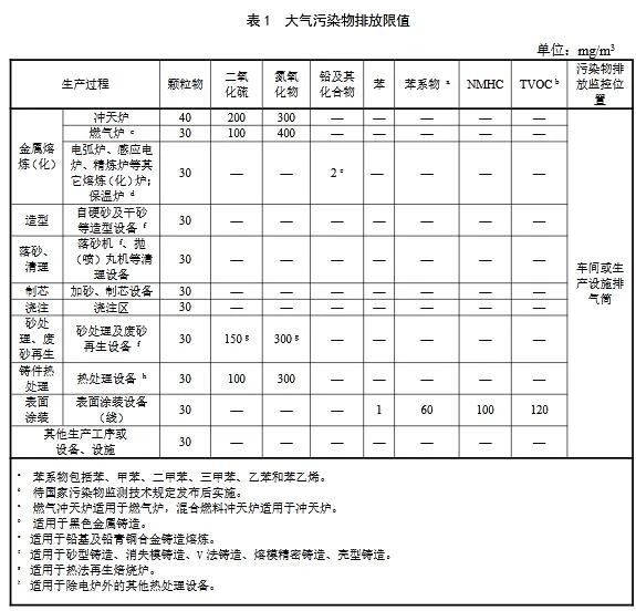 一、鑄造工業大氣污染物排放標準(GB 39726—2020)