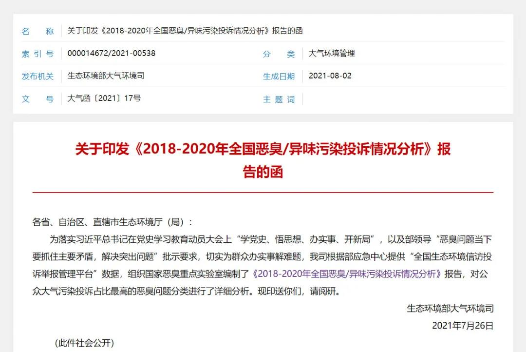 82日,生態環境部大氣環境司印發了《2018-2020年全國惡臭/異味污染投訴情況分析》,對公眾大氣污染投訴占比蕞高的惡臭問題分類進行了詳細分析,其中很多內容都有非常大的參考價值。
