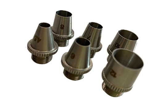 主要用于配套多功能煙塵采樣槍,其主要材質(zhì)為不銹鋼,根據(jù)采樣嘴孔徑不同主要分為4mm、5mm、6mm、8mm、10mm、12mm六種規(guī)格,用濾筒采集煙塵時使用