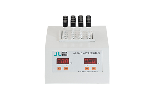JC-101B型COD快速消解儀是一種快速測定化學耗氧量的加熱裝置。可進行COD、總磷、總氮等樣品消解預處理。聚創至2014年起升級配備了標準哈希同級可密封消解管。為了保證使用安全,便于客戶實驗過程中觀察樣品,聚創環保升級配置透明消解防護蓋。防止液體噴濺對人體造成傷害。
