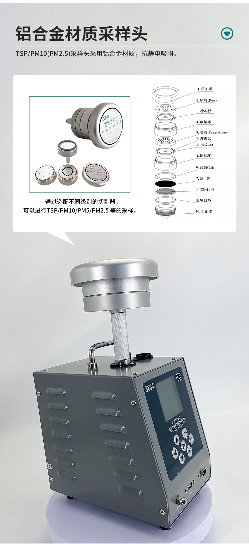 1、采用無(wú)刷控制風(fēng)機(jī),噪聲小,負(fù)載大,適合連續(xù)長(zhǎng)時(shí)間工作。 2、TSP/PM10(PM2、5)采樣頭采用鋁合金材質(zhì),抗靜電吸附。 3、實(shí)時(shí)監(jiān)測(cè)計(jì)壓、計(jì)溫,自動(dòng)補(bǔ)償流量偏差,進(jìn)一步優(yōu)化了流量精確度。 4、自動(dòng)調(diào)節(jié)對(duì)比度的中文液晶顯示屏,適應(yīng)于寒冷地區(qū)采樣,通俗軟件顯示界面,實(shí)現(xiàn)良好人機(jī)交互。 5、自動(dòng)計(jì)算累計(jì)采樣體積,并同時(shí)根據(jù)氣壓、溫度換算標(biāo)況采樣體積。