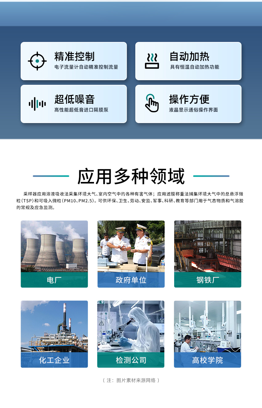 可供環(huán)保、衛(wèi)生、勞動(dòng)、安監(jiān)、軍事、科研、教育等部門用于氣態(tài)物質(zhì)和氣溶膠的常規(guī)及應(yīng)急監(jiān)測。