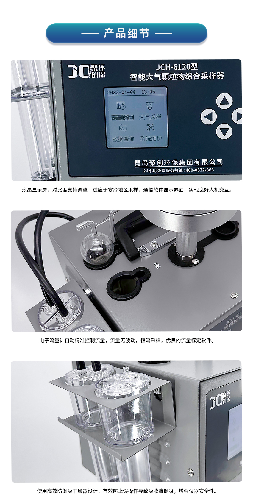 JCH-6120型大氣/顆粒物綜合采樣器 (以下簡稱采樣器) 可以實(shí)現(xiàn)環(huán)境空氣和總懸浮顆粒物綜合采樣,應(yīng)用溶液吸收法采集環(huán)境大氣、室內(nèi)空氣中各種有害氣體,應(yīng)用濾膜稱重法捕集環(huán)境大氣中的總懸浮微粒(TSP)和可吸入微粒(PM10、PM2.5等)。該系列采樣器性能穩(wěn)定,操作方便,并在小型便攜、流量穩(wěn)定性等方面有較大的改進(jìn),大大減少了勞動(dòng)強(qiáng)度。