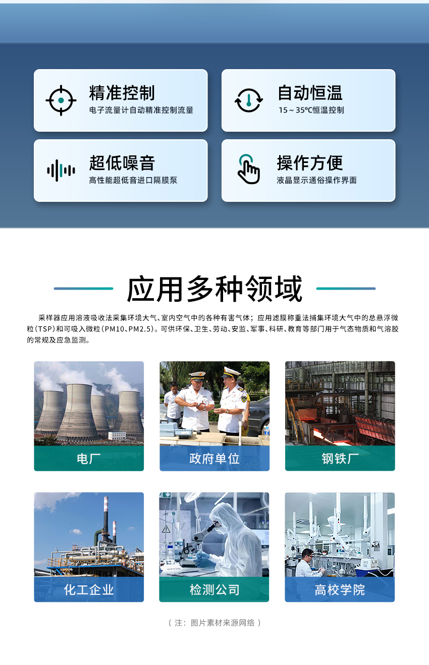 一、產品概述 JCH-6120型大氣/顆粒物綜合采樣器 (以下簡稱采樣器) 可以實現環境空氣和總懸浮顆粒物綜合采樣,應用溶液吸收法采集環境大氣、室內空氣中各種有害氣體,應用濾膜稱重法捕集環境大氣中的總懸浮微粒(TSP)和可吸入微粒(PM10、PM2.5等)。該系列采樣器性能穩定,操作方便,并在小型便攜、流量穩定性等方面有較大的改進,大大減少了勞動強度。