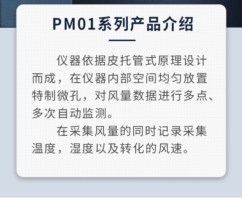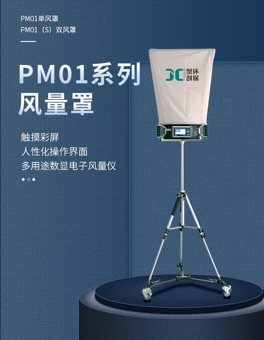 聚創PM01(S)型風量罩(以下簡稱風量罩)采用皮托管式原理,對風壓進行多點、多次自動檢測,產生平均風量(m3/h),具有正確、快速、簡便的特點,廣泛應用于暖通空調、凈化技術等行業進行風口和管道風量的直接測定,從而對集中空調的風量實施綜合管理及溫度、濕度、潔凈度等參數的自動控制。